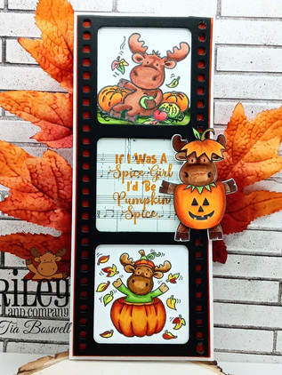I took two of the stamps (Pumpkin Patch and Popping Pumpkin Riley) and added them to the die-cut film strip.